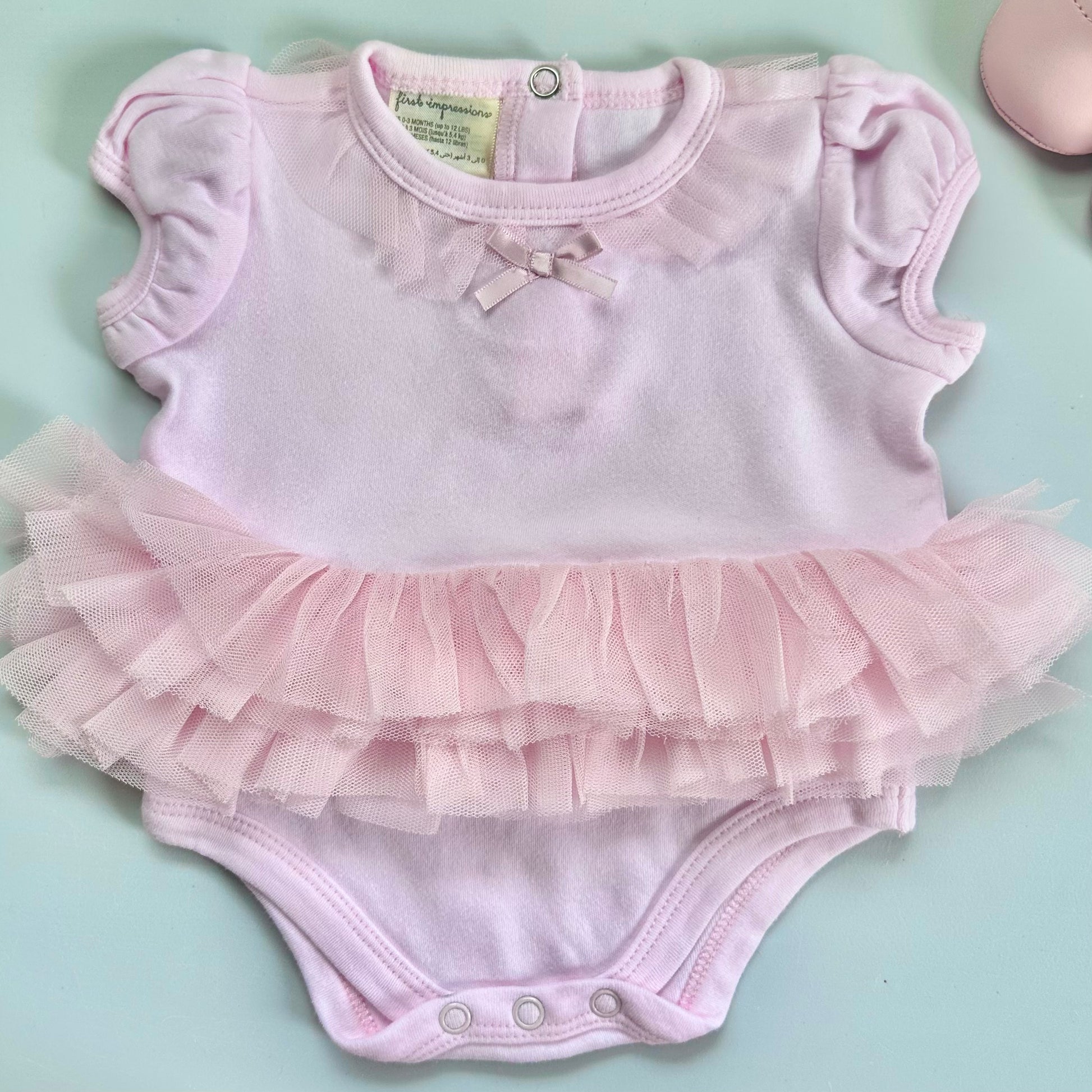 - Tutu bodysuit and headpiece size: 0-3 months